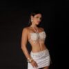 Trazendo um minimalismo sensual, o Conjunto Essence traz foco para o corpo e suas formas, em um visual que une elegância e sutileza. Essa estética minimalista, com cortes limpos e proporções equilibradas, é uma das tendências mais fortes do momento. O uso da malha texturizada traduz a busca por tecidos com apelo tátil, que unem tecnologia e bem-estar, tendência essencial em coleções que dialogam com a moda resort e o lifestyle moderno. Nossa dica é combinar o Conjunto Essence ao lado de sandálias rasteiras minimalistas para um look resort chic, ou com salto fino metálico para um evento noturno sofisticado.