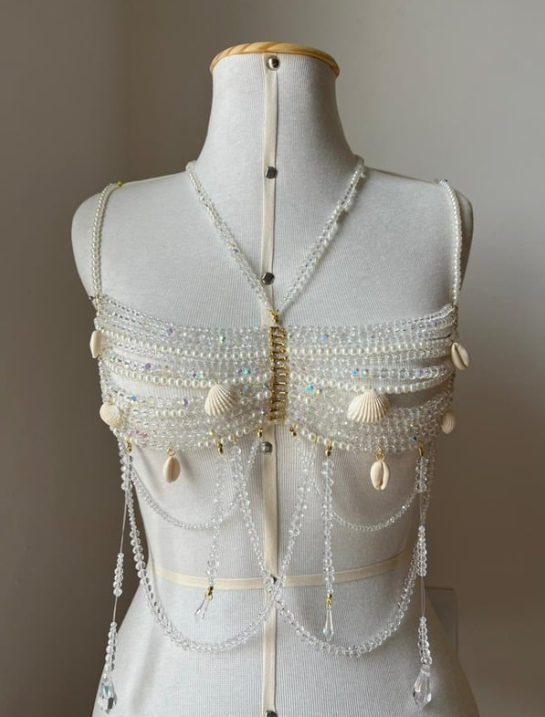 feito com cristais & transparentes e conchas