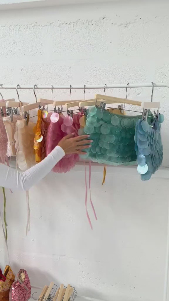 Esta minissaia é feita de tecido de algodão macio e bordada à mão por artesãos com conchas gigantes de madrepérola. Cortada e forrada em 100% algodão, esta saia de cintura baixa contorna suavemente os quadris com um corte justo em A. Esta peça única combina com tudo, desde camisetas de algodão até nossa seleção de bustiês e espartilhos esculturais.